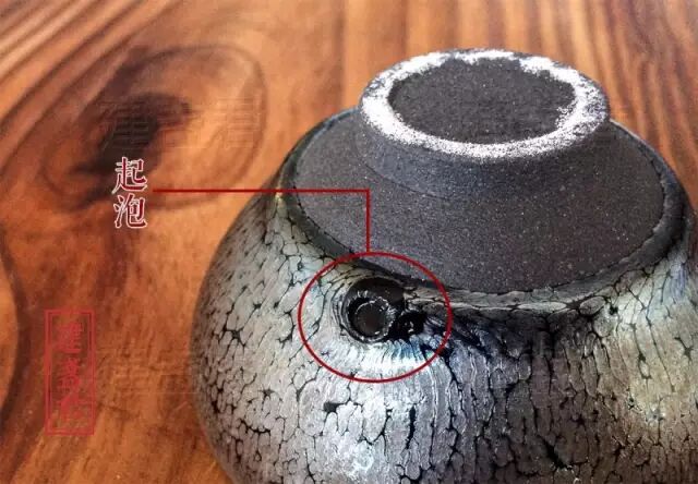 ▼起泡,边缘锋利,釉水鼓起后破裂产生