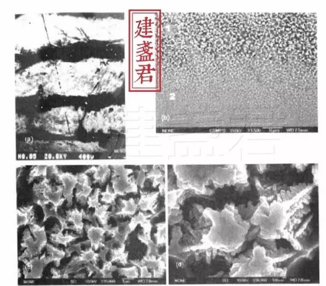 ▼建盏釉的显微结构,图中可见氧化铁晶体
