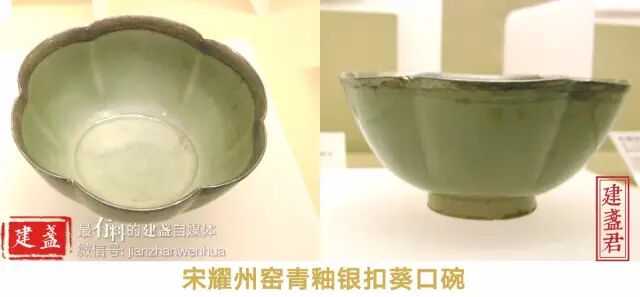 这说明建盏的釦边有一定的功能性,如果只是为了美观,就不太需要作此设计,只需如下图中的耀州窑青瓷一般,顺着瓷器本身的形状包边就可以了。