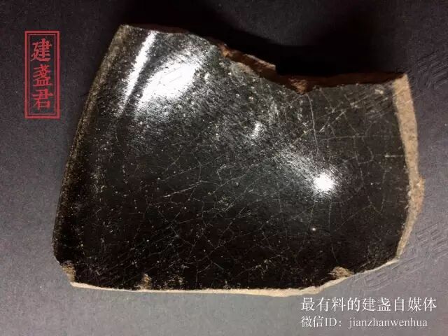 ▼图2-1.有开片的宋代建盏标本,抚摸起来非常光滑舒服,开片与乌金釉中隐隐的兔毫纹相映成趣